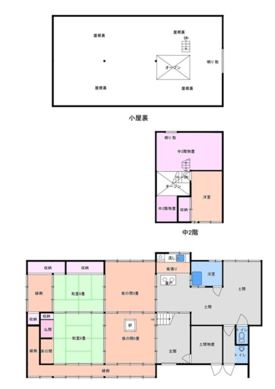 | 付帯物件・その他 | 倉庫, 土間, 縁側, 屋根裏収納, 囲炉裏, かまど | ||