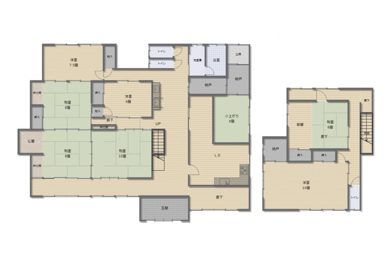 ・1階に5部屋、2階に2部屋の昔ながらの広い家です。
