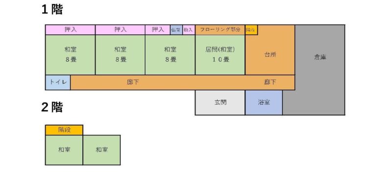 | 特記事項 | 家財あり。必要であればお譲りします。2階和室の天井について修繕が必要。 | ||