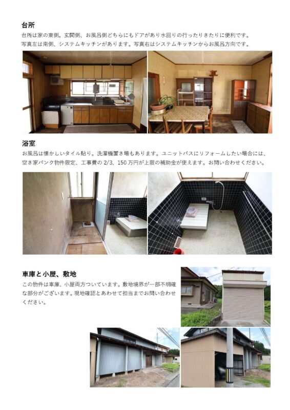 | 備考 | 近くには月布川もあり、アウトドアを楽しむにはピッタリの立地です。 ⇒町場にも出やすい、程よい里山。 ※下記空き家バンクURLより、物件確認とお問合せをお願いいたします。 |