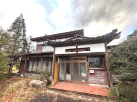 空き家バンク【売買】300万円(応相談)新潟県五泉市下新 築100年程・広い敷地・和風門扉有 庭・物置・小屋3棟・駐車場付き10DK平屋古民家 水洗トイレ 土間・縁側・続き間有 売買価格:300万円(応相談) | 賃貸価格: | 10DK | 建物-面積:248.62㎡ 小屋3棟①138.84㎡②12.39㎡③29.75㎡ | 土地-面積:2281.36㎡ | 建物-築年月:築100年程 | 物件番号:空き家バンク物件 7