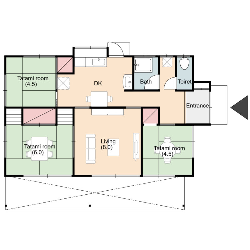(交渉中)空き家バンク【売買】470万円 栃木県栃木市大塚町 生活便利 カーポート2台付き4DKコンパクト平屋 上下水道 売買価格:470万円 | 賃貸価格: | 4DK | 建物-面積:63.76㎡ | 土地-面積:256.58㎡ | 建物-築年月:1977年 | 物件番号:空き家バンク物件 1054