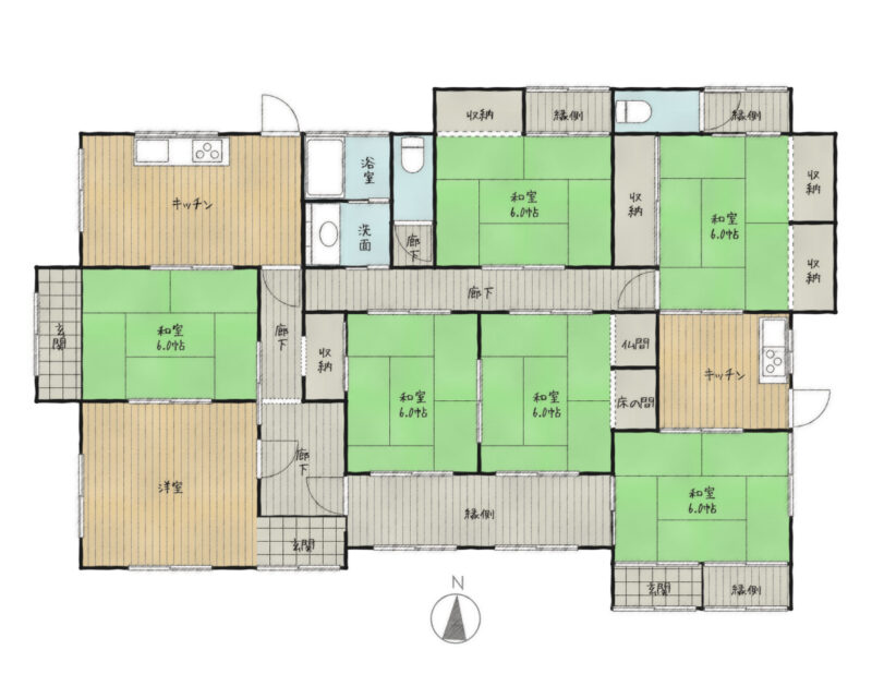 空き家バンク【売買】300万円 鹿児島県伊佐市菱刈荒田 広い敷地 庭・大型倉庫・車庫・駐車場6台付き7KK平屋古民家 水洗トイレ 広縁・続き間有 売買価格:300万円 | 賃貸価格: | 7KK | 建物-面積:168.51㎡ | 土地-面積:982㎡ | 建物-築年月:昭和48年 | 物件番号:空き家バンク物件 269