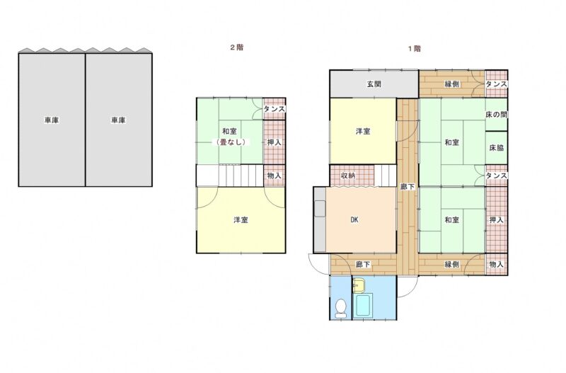 空き家バンク【売買】300万円 岩手県奥州市江刺玉里字枛ノ木谷地 里山と田園を望む・広い敷地 田畑・原野・ベランダ・旧畜舎・車庫・駐車場5台付き6部屋2階建古民家