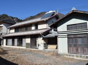 (交渉中)空き家バンク【売買】230万円 山梨県南アルプス市塩前 庭・蔵・作業所・2LDK別棟・車庫付き6部屋2階建古民家 水洗トイレ 各階ホール・広縁・続き間有 売買価格:230万円 | 賃貸価格: | 6部屋+2LDK | 建物-面積:母屋1階101.26㎡ 2階49.68㎡ 別棟1階30.63㎡ 2階15.02㎡ | 土地-面積:648.58㎡ | 建物-築年月:昭和26年4月 | 物件番号:空き家バンク物件 194