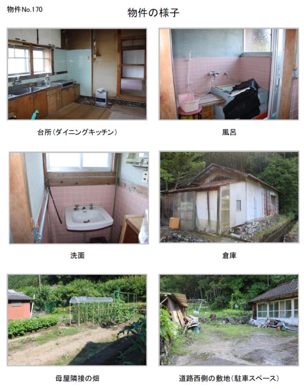 空き家バンク【売買】400万円 高知県香美市香北町吉野 畑・庭・倉庫・駐車場3~4台付き4DKコンパクト平屋 売買価格:400万円 | 賃貸価格: | 4DK | 建物-面積:75.54㎡ | 土地-面積:480.17㎡ 畑259㎡ | 建物-築年月:1974年 | 物件番号:空き家バンク物件 170