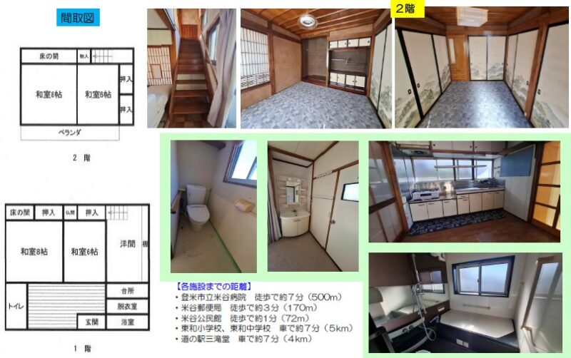 空き家バンク【売買】300万円 宮城県登米市東和町米谷字秈荷 ベランダ・駐車場4台付き5K2階建古民家 上下水道 売買価格:300万円 | 賃貸価格: | 5K | 建物-面積:108.1㎡ | 土地-面積:204.07㎡ | 建物-築年月:昭和35年 | 物件番号:空き家バンク物件 276