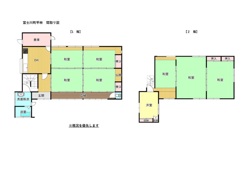 (交渉中)空き家バンク【賃貸】2万円 山梨県南巨摩郡富士川町平林 棚田を望む 庭・倉庫・駐車場2~3台付き8DK2階建 縁側・続き間有 売買価格: | 賃貸価格:2万円 | 8DK | 建物-面積:1階70.24㎡ 2階32.38㎡ | 土地-面積:230.17㎡ | 建物-築年月: | 物件番号:空き家バンク物件 95