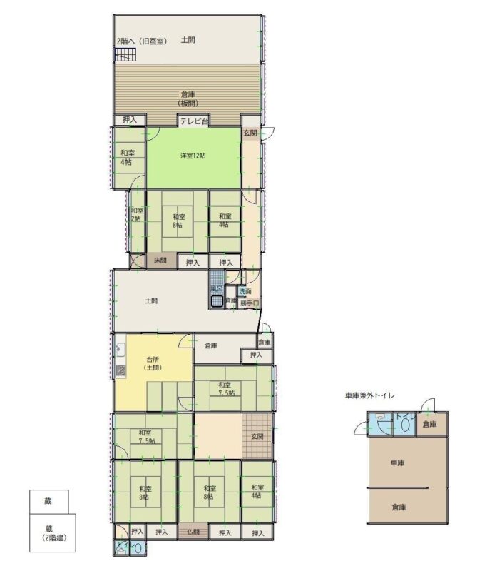 空き家バンク【売買】400万円 三重県松阪市庄町 田畑・庭・蔵・車庫兼倉庫付き9部屋平屋一部2階建古民家 土間・旧蚕室有 売買価格:400万円 | 賃貸価格: | 9部屋 | 建物-面積:1階239.86㎡ 2階54.54㎡ | 土地-面積:902.86㎡ | 建物-築年月:不詳 | 物件番号:空き家バンク物件 60