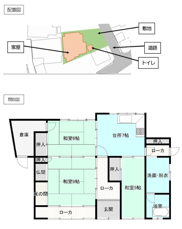 空き家バンク【売買】80万円(応相談)三重県度会郡南伊勢町五ヶ所浦 港風景を望む高台 併設倉庫・2部屋離れ付き5K2階建古民家 売買価格:80万円(応相談) | 賃貸価格: | 5K+離れ2部屋 | 建物-面積:1階62.80㎡ 2階33.05㎡ | 土地-面積:124.69㎡ | 建物-築年月:築60年 | 物件番号:空き家バンク物件 325