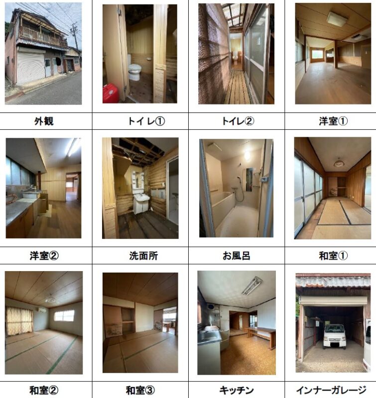 空き家バンク【売買】50万円 (応相談)三重県多気郡多気町平谷 駅徒歩5分 2面ベランダ・インナーガレージ付き5部屋鉄骨2階建 上下水道 売買価格:50万円(応相談) | 賃貸価格: | 5部屋 | 建物-面積:75.65㎡ | 土地-面積:113.77㎡ | 建物-築年月:昭和51年頃 | 物件番号:空き家バンク物件 93
