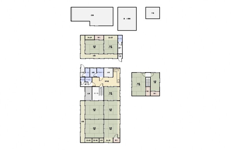 (交渉中)空き家バンク【売買】300万円 京都府綾部市下原町 離れ2棟・倉庫付き4LDK平屋古民家 縁側・続き間有 売買価格:300万円 | 賃貸価格: | 4LDK | 建物-面積:123.13㎡ | 土地-面積:634.43㎡ | 建物-築年月: | 物件番号:空き家バンク物件 HS-107