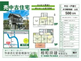 空き家バンク【売買】500万円 神奈川県足柄上郡山北町平山 バルコニー・サンルーム・駐車場2台付き5DK2階建 上下水道 売買価格:290万円 | 賃貸価格: | 5DK | 建物-面積:88.41㎡ | 土地-面積:178.85㎡ | 建物-築年月:昭和57年8月 | 物件番号:空き家バンク物件 080220